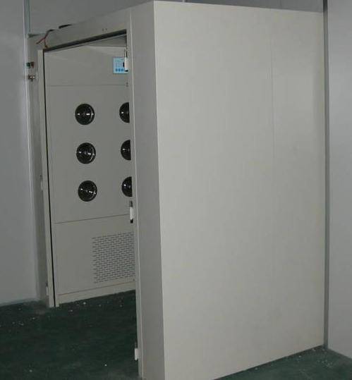 貨淋室通過(guò)高效風(fēng)機(jī)作用送風(fēng),經(jīng)高效過(guò)濾器過(guò)濾后吹出高速潔凈氣流,以22-30m/s超強(qiáng)風(fēng)速,確保進(jìn)入潔凈區(qū)的人員及貨物達(dá)到徹底除塵的效果。采用全自動(dòng)紅外線感應(yīng)控吹淋,雙門電子互鎖。